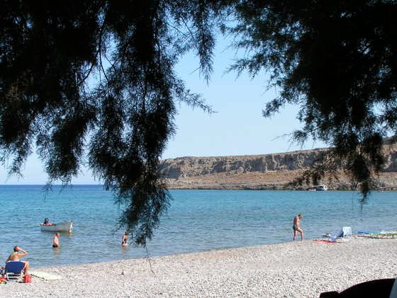 Diaskari. Two kilometers to the east of Makris Gialos, lies Diaskari. A large, sandy beach, without recliners. The sea is outstanding. You can find shade in a few spots. At the end of the beach, you can find a cave in the cliff, ideal for protection against the sun. Right next to the cave, there is a trail that climbs up the hill and leads to another beach, Lagada with its big tamarices… Read more