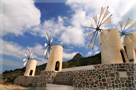 The trademark of the Plateau is its windmills, which, with their white cloth parts, compose a beautiful scenery, an extraordinary view that is hard to forget. Once upon a time, there were more than 12000 windmills, but during the course of the years, a lot of them were abandoned. Outside the windmills, however, there are a lot of natural and historical monuments that impress the visitors and leave them with the fondest of memories. It’s remarkable, how this small area concentrates so many and important historical facts and sights, such as the Cave of Psichros, where Zeus was born and the ruins of the Minoan civilization of Eteocretes, in Karfi.